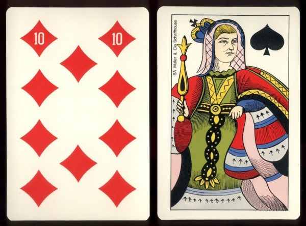 Maxi Carte Party by Mueller and Cie of Switzerland. Complete 36 cards deck made in a large size of 11.5 cm x 17.5 cm.