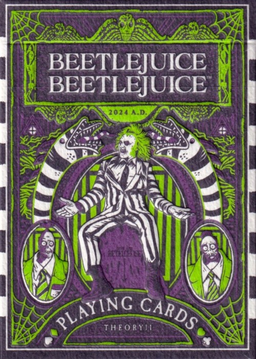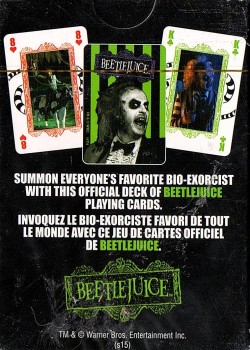 Go ahead, make our millennium with a must-have deck of cards for fans of the original classic and the long-awaited sequel! Featuring vibrant slime green and haunting purple accents, Beetlejuice is back from the dead and ready to exorcise your game nights! Take a dip into the ghost realm with Beetlejuice, Lydia, Delia, and all of your favorite characters, bringing them (back) to life! If you’re a ghost, keep your head (or what’s left of it) on a swivel - the sandworms are hungry!