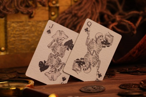 The court cards of the Standard Editions adopt a more minimalist approach, featuring stark, skeletal graphics. This simpler design choice starkly complements the ornate cards of the special editions, providing a visual representation of the skeletal remains of piracy‘s past, stripped to the bare bones yet striking in their eerie simplicity.