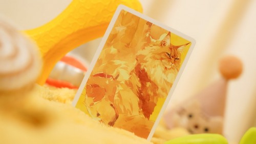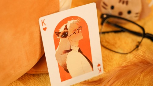We designed this deck of cards with warm tones, featuring these heartwarming "fur babies" that heal our hearts and bring us joy, relaxation, and warmth. In the design of the deck, we continued with warm tones, featuring the good-natured Maine Coon and Golden Retriever on the card backs. The bright orange and yellow on the card faces replace the traditional red and black suits. We've hidden a little sweetheart in the pip cards! The court cards depict charming scenes of joyful moments shared with pets. An excellent deck for lovers of pets, especially cats and dogs.