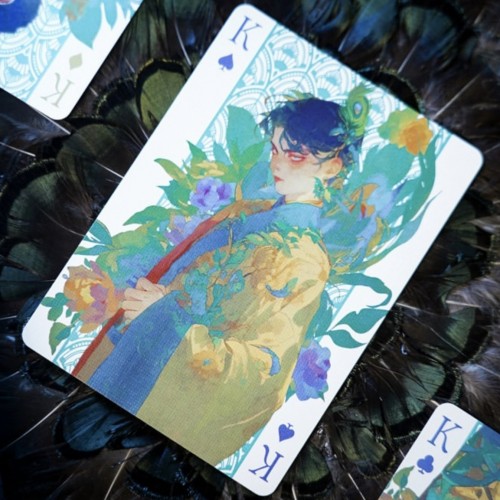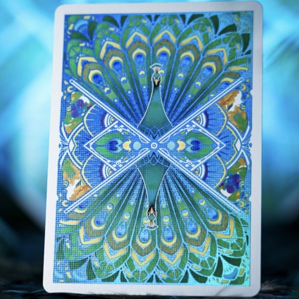 The peacock is a highly captivating bird. With its magnificent feathers, it seems like a fairy stepping out of the forest. We use exquisite HOLO foil to capture the iridescent splendor of its plumage. The card backs feature a Flash animation effect that makes the peacock's feathers move when you riffle the cards, creating a more vivid and colorful display. The card faces, including the court cards, have been redesigned with numerous peacock elements. Gilded: The dreamy and enchanting Peacock, adorned with green diamond-cut gilded edges, combined with the cold foil printing technique, presents a visual feast that captures the grace of the Peacock, truly embodying its elegance as the king of birds.
