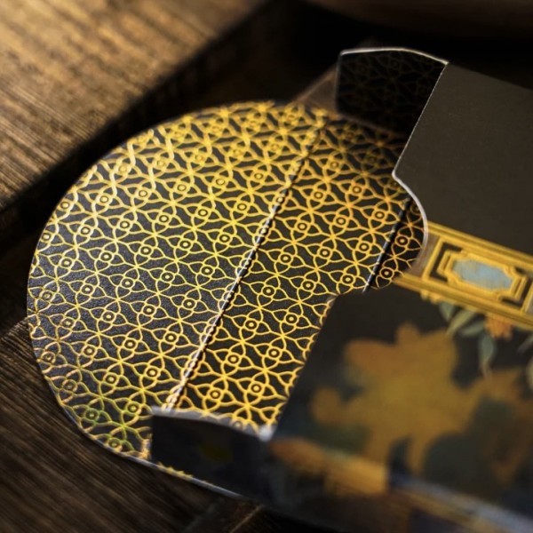 Great care has been taken to blend traditional elements into the card faces, which feature customized designs for both the court cards and the pips. Each court card is displayed against a scroll-like background, with the characters dressed in traditional attire. The intricate ancient patterns on the garments symbolize harmony and beauty.