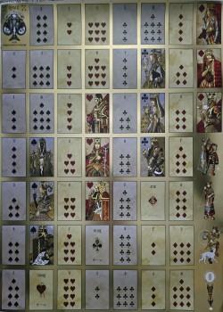The Gilded Cartomancer variant has one way custom illustrated court cards, 4 jokers, and ace of spades surrounded by shiny gold. The cards handle fantastic and the light reflected on the gold foiled areas makes the cards pop and shine.