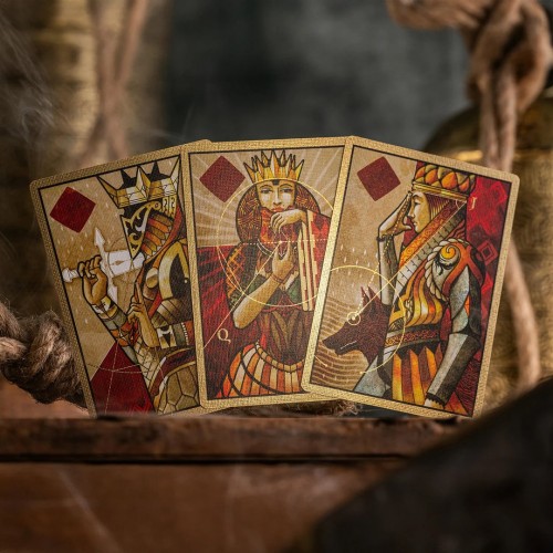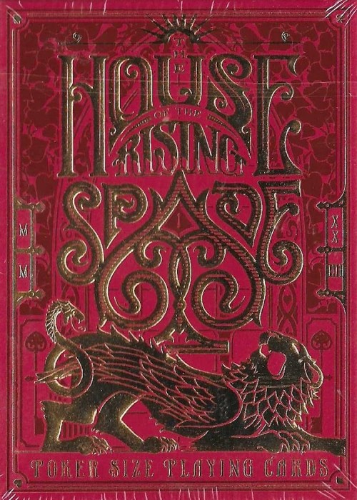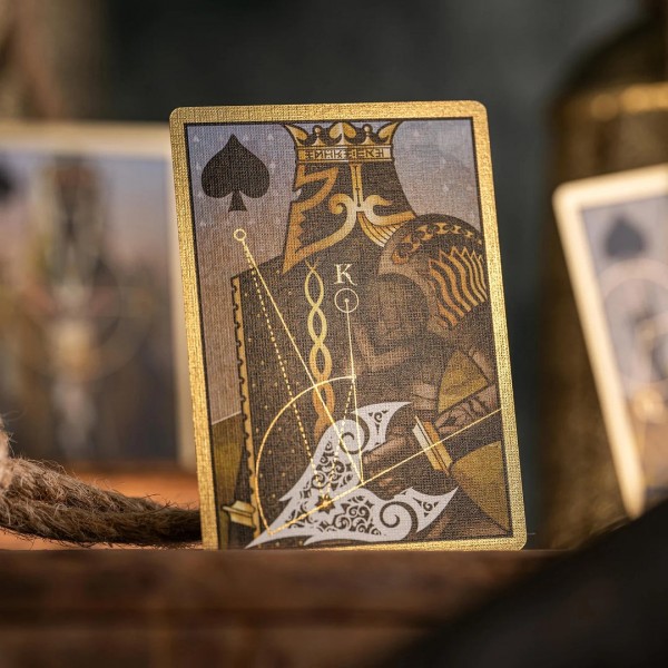 The Gilded Cartomancer variant of the House of the Rising Spade Playing Cards features gold gilded edges which makes them resemble the rare and illustrious Room 17 playing cards by Stockholm17.