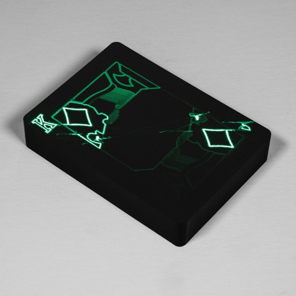 Collaboration with Colorshift - Images generated from green laser flashing etching. The cards are animated, black edge print.