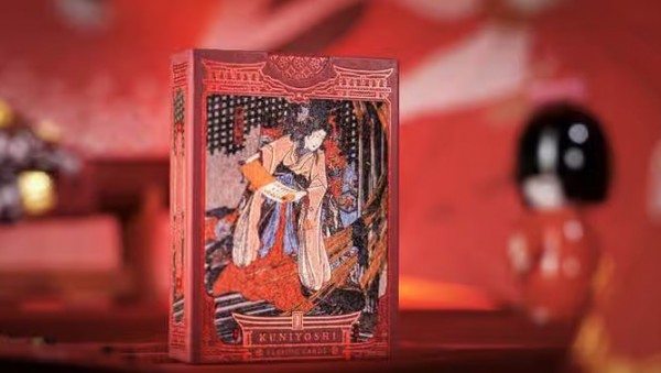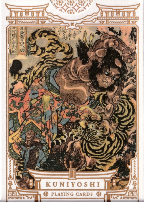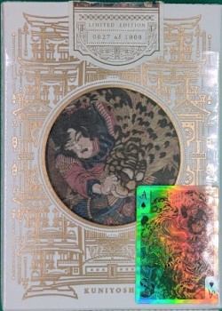 This deck showcases iconic ukiyo-e works from Utagawa Kuniyoshi's career, including his series on the heroes of Water Margin, samurai illustrations, and various depictions of yokai (supernatural creatures).