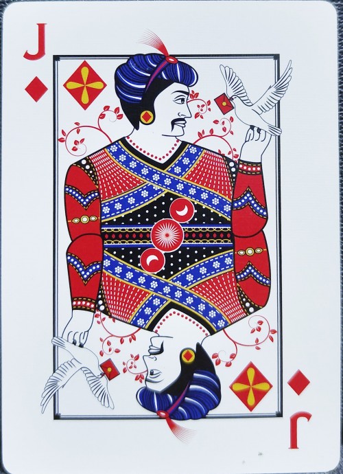 Card designs embody the eternal passage of time, with intricate designs featuring Indian kings, queens, and celestial motifs like the radiant sun and the mysterious moon.