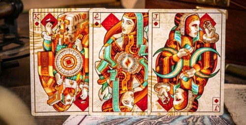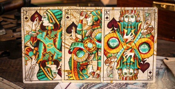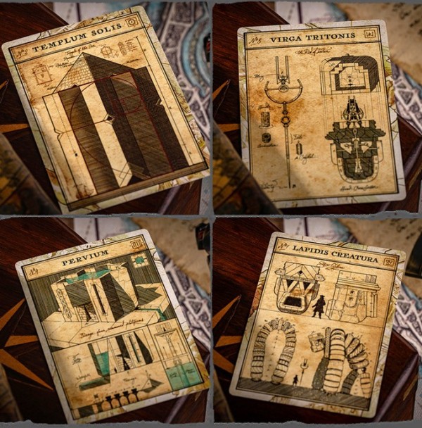 Three decks of cards bear the names of ancient bloodlines that once inhabited the Eye of the Ocean—a megalithic sailing island, the venerable guardian of the seas from a bygone, antediluvian era.
