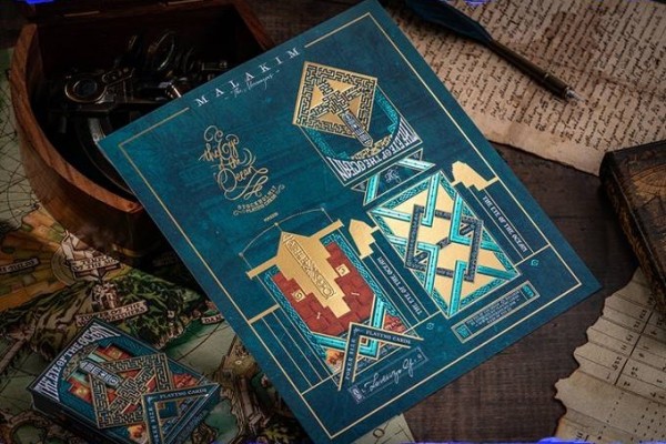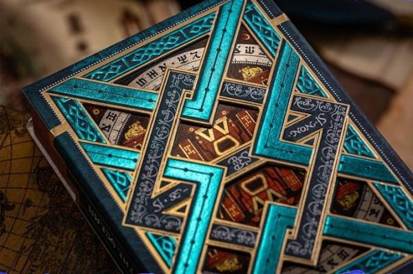 - Card backs are finished with gold and silver cold foil - teal color scheme.