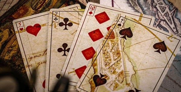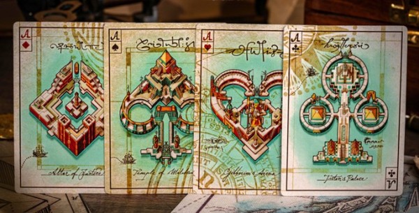 Three decks of cards bear the names of ancient bloodlines that once inhabited the Eye of the Ocean—a megalithic sailing island, the venerable guardian of the seas from a bygone, antediluvian era.