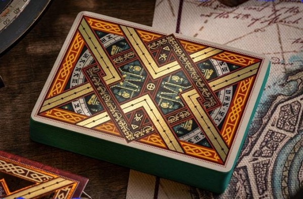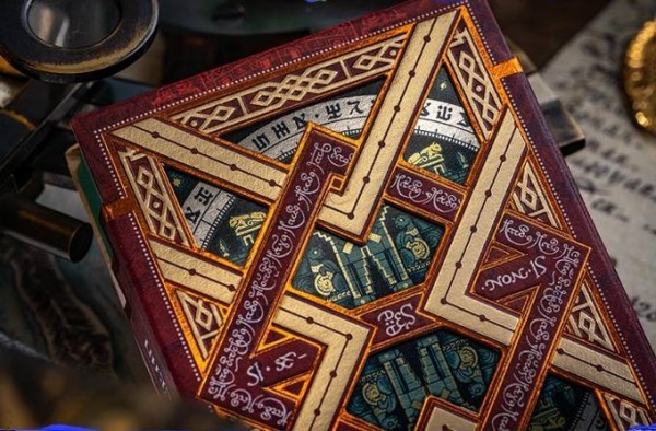 - Card backs are finished with gold and silver cold foil - burgundy red color scheme.
