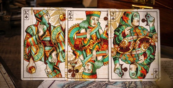 Three decks of cards bear the names of ancient bloodlines that once inhabited the Eye of the Ocean—a megalithic sailing island, the venerable guardian of the seas from a bygone, antediluvian era.