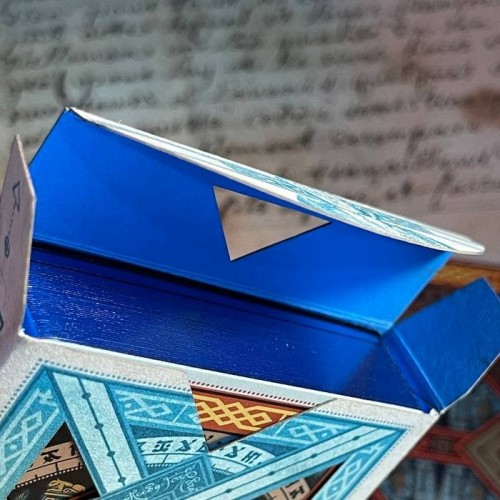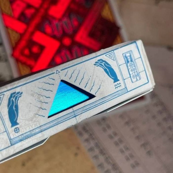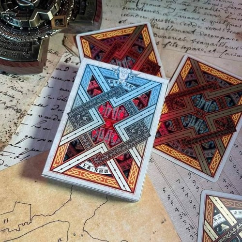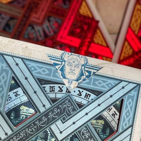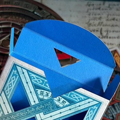During the production of the Gibborim variant, there was an issue with the gilding - the cards are gilded in wrong color. Instead of disposing them, a new deck is made - a brand new tuck box designed to keep these decks. It has the same cards as the final Gibborimg Playing Cards, only the color of the gilding is different, and the tuck box design is relatively simple.