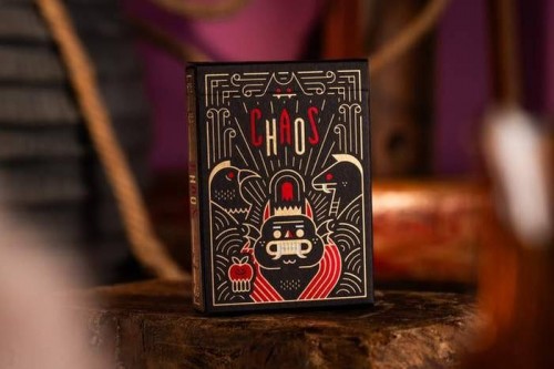 Chaos Playing Cards features mythological theme and the concept of CHAOS! The Aces features enlarged customized pip, with each suit shows the characteristics of one of the four realms found in the Realm of Chaos. The Number Pips features customized pips that both features faces inside along with some symbols. The Courts feature some of the famous mythological creatures exist in legends. There are 4 Joker Cards - 2 of them features the main deities of the Realm: The Cat who wants Chaos and The Goddess who wants Order. The cards feature holographic silver cold foil on both sides. Cards are printed by Kingstar