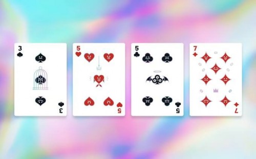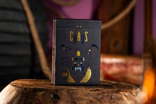 Chaos Playing Cards features mythological theme and the concept of CHAOS! The Aces features enlarged customized pip, with each suit shows the characteristics of one of the four realms found in the Realm of Chaos. The Number Pips features customized pips that both features faces inside along with some symbols. The Courts feature some of the famous mythological creatures exist in legends. There are 4 Joker Cards - 2 of them features the main deities of the Realm: The Cat who wants Chaos and The Goddess who wants Order. The cards feature holographic silver cold foil on both sides. Cards are printed by Kingstar