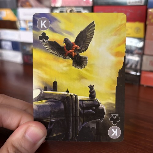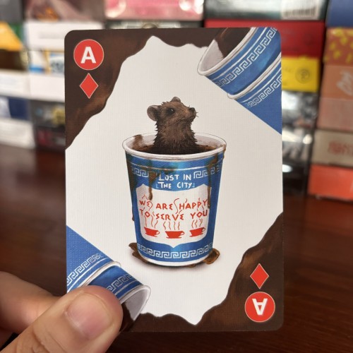 This is the Lost in the City deck of cards. A standard size deck that is all about street food and an adorable city rat exploring the big city. This is a fully illustrated deck, so it's packed with original art. Here the suits are represented by different iconic street food: Bagels, pretzels, cups of coffee and slices of pizza.