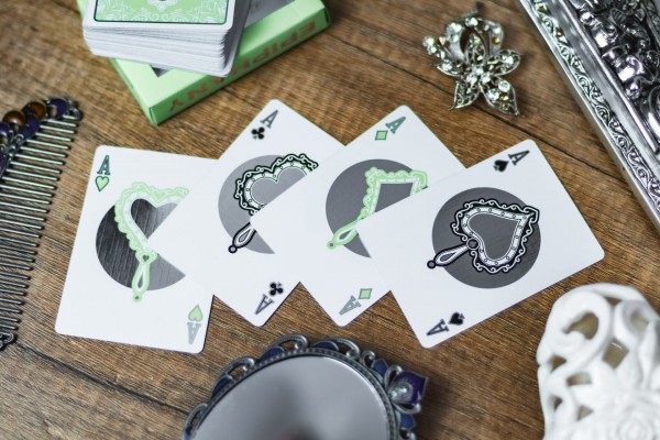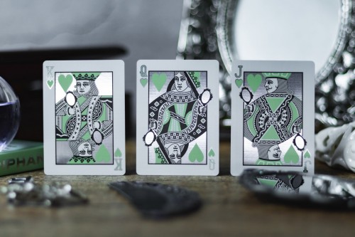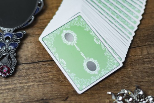 Reflections Playing Cards is a reader type marked deck produced by EmilySleights52. The deck's main theme is mirror and reflection, hence you would find most parts of the deck to be foiled in shiny reflective silver foil. The deck is produced by Kingstar Playing Cards Company.