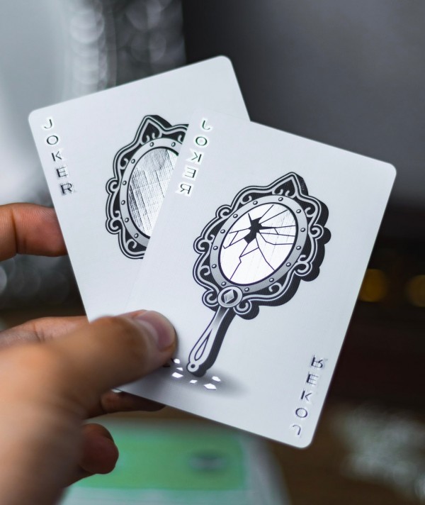 Reflections Playing Cards is a reader type marked deck produced by EmilySleights52. The deck's main theme is mirror and reflection, hence you would find most parts of the deck to be foiled in shiny reflective silver foil. The deck is produced by Kingstar Playing Cards Company.