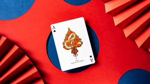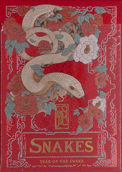 We use vibrant peony red as the main color tone, creating an atmosphere of celebration, enhanced with dazzling golden highlights. The elegant curves of the white snake, the intricate texture of its scales, and the delicate Foil patterns come together to add depth and richness to the design of the playing cards.
