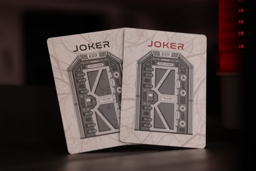 The card backs showcase the ominous hatch door, a gateway to the unknown, alongside a detailed depiction of the spaceship EDENBETHEUS, the last refuge of humanity. The intricate design captures the haunting essence of the ship as it drifts through the void, concealing both salvation and terror within its walls.