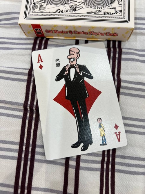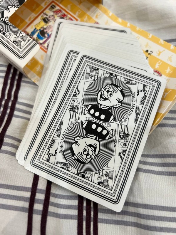 Gabangel presents Old Master Q Playing Cards. This deck of playing cards is officially licensed to feature this oldest long-running comic from Hong Kong narrated by Alphonso Wong. Every deck includes the holographic anti-counterfeit sticker. The cards are printed by Keycard Playing Cards in Hong Kong.