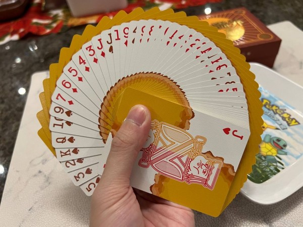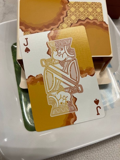 Eggtastic Playing Cards feature the standard poker sized playing cards. Both the faces and backs features broken borders element of the iconic egg-tart. When the cards are fanned, it will form continuous graphic, and you might as well formed the round pastry on your hands. The simplicity of the design makes a good deck for cardistry. The deck may also comes with a special display box, which has an information about this pastry.