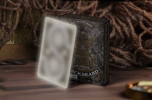 The Treasure of Blackbeard Playing Cards is the most exclusive deck in the "The Trial of Blackbeard" series by Anti-Faro. It is the only deck which you can only get IF you are able to solve the puzzle quest infused within The Trial of Blackbeard Obsidian/Pearl Special Edition. If you managed to solve it, you are able to get it through Room One's webstore - choose either two options. Limited to 1 deck per person. You only get ONE CHANCE to submit the correct answer!