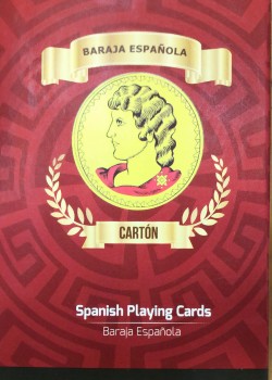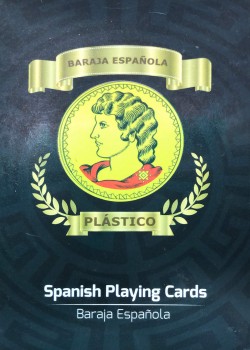 Found at a thrift store. A Baraja Espanola deck from Spain. This is the Castilian pattern. There is no ten card. 12 = King, 11 = Queen, 10 = Jack. The suits are Cups - Cupas, Oros - Coins, Bastos - Clubs, Espadas - Swords.