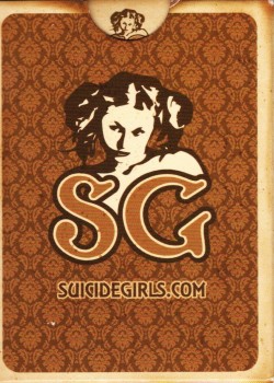 In 2005 and again in 2007, artist Rion Vernon designed a deck of cards for the “Suicide Girls,” known generally as the “First Edition” and “Second Edition” decks, respectively. They are not successive editions of the same cards, but rather 2 different decks with different illustrations.