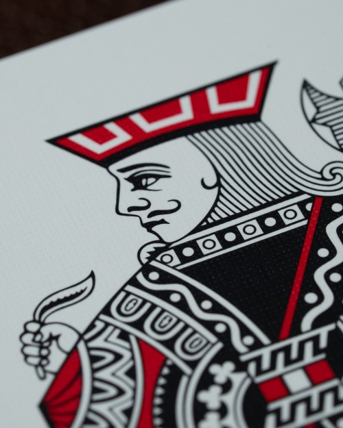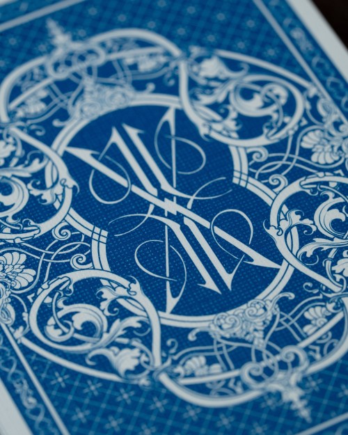 The tuck box retains the same artwork, only that it is made as standard as possible: Semi-Glossy stock with blue color artworks. The back design is recolored into blue, with an improved marking and a subtle addon which makes it a subtle one-way back. The large indices makes the deck easily readable. There are no Jokers in the deck, instead there are 4 gaff cards usable for magic.