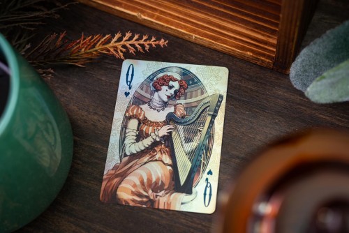 There are a total of 28 designers participated in the creative creation of music and playing cards theme. For the Tuck Box, Courts, Aces, Jokers and Ad Card, they are in the work of one designer. For the Numbers, each designer created the design for each value from 2 to 10. It is a deck that showcase the flairs of the known designer of playing cards. There is an extra card that shows all of the Back Designs which some of the designers created for the deck. The cards are produced by Kingstar Playing Cards Co.