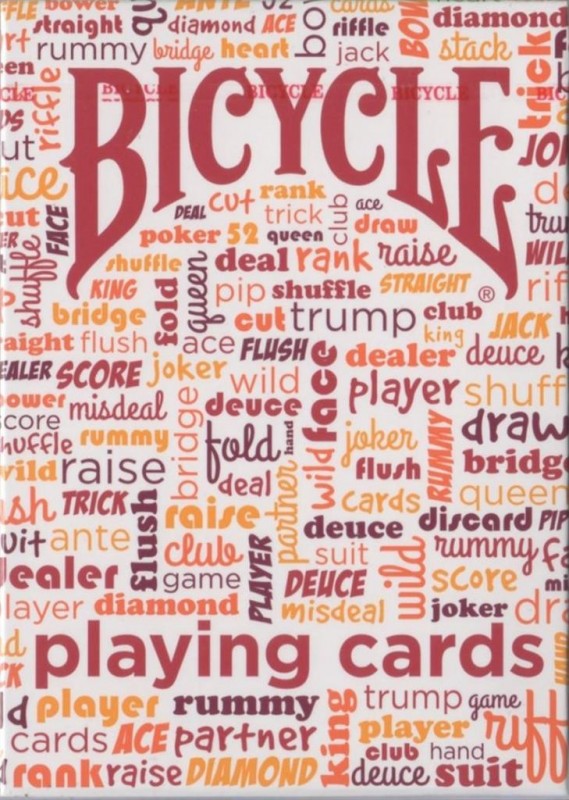 This deck features playing card jargon on almost every surface, and comes in two colors: a warm set with reds, yellows, and oranges, and a cool set with blues, greens, and indigos. The Table Talk Deck features original artwork on the tuck, card back and the Ace of Spades. These decks were printed in the USA at the United States Playing Card Company and printed on premium stock with a quality finish.