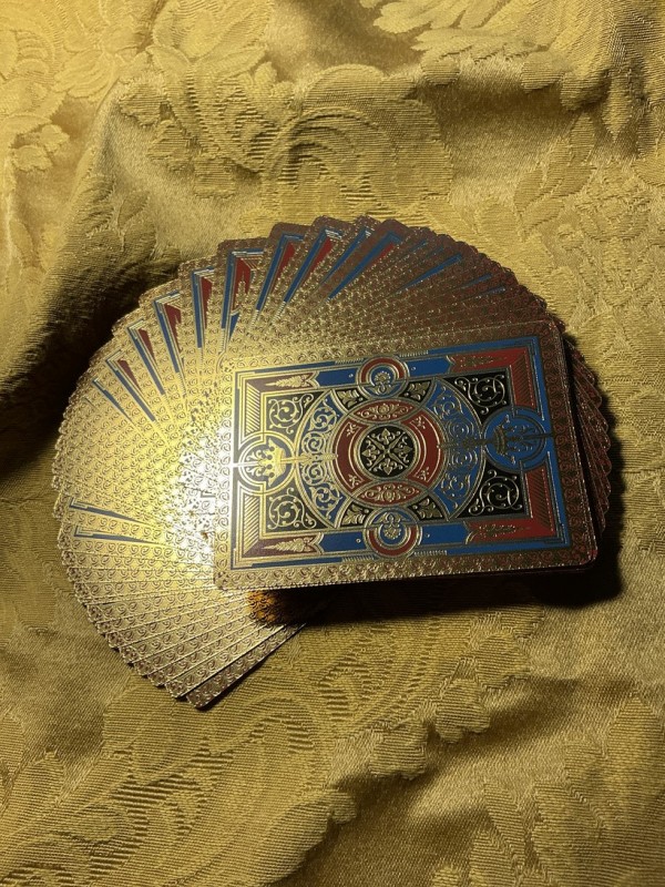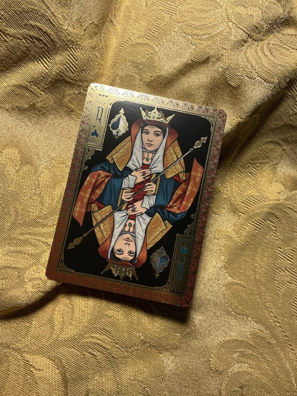 Lotrek still didn't approve of that edition being the PATREON reward, now mainly because of other reasons: colors on the back that should have been darker, an un-embossed playing card stock used which looks somewhat ordinary and doesn’t help handling, and finally the foil used, which feels too brilliant on the face cards. However, the brilliance makes the issue with the foil on these 3~4 cards barely noticeable when you fan them. Lotrek decided to save the print, or a part of it. The decks were sold during the GOLDEN RULE Silk Edition sale. They went in a simple but very elegant red tuck box, hand numbered (xx/280) with Gold Foil and marked as "TEST PRINT". The decks that remained unsold after the end of the sale were destroyed.COMPANY:OATH Playing Cards Co.