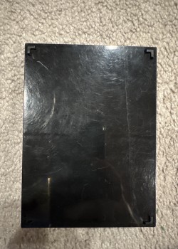 Solid tan background with letter Fs formed by rainbow sprinkles - as if of a birthday cake.