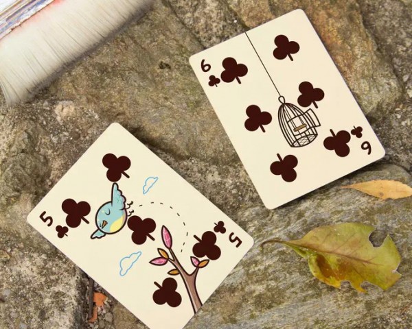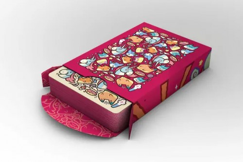 The four suits are Foxes, Unicorns, Cats and Birds and the number cards are littered with little references to these four critters.
