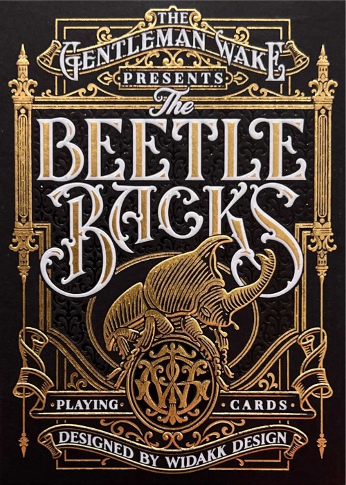 The Beetle Backs, presented by The Gentleman Wake and designed by Widakk Design, is the culmination of a two-year long effort to create a deck of cards perfect for Collectors, Players and Magic Enthusiasts everywhere. Classic and beautiful, evoking turn-of-the-20th-century style and elegance and the finest modern handling and playing card printing techniques, The Beetle Backs also tells the Kafkaesque tale of an embattled entomologist deep in study of his chosen field; the Dynastinae subfamily of scarab beetles.