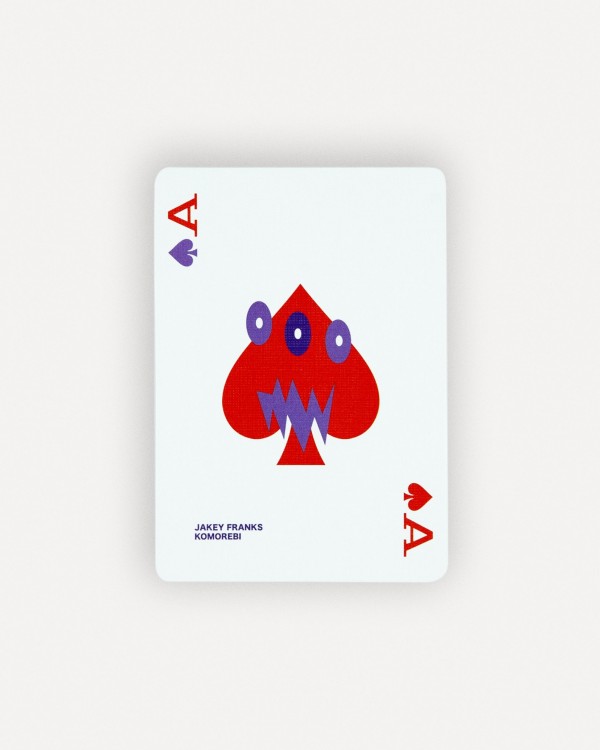 The Monster-esque back design by Komorebi. This one features purple and red, with landscape oriented back as well as landscape oriented indices. The Courts feature graphic abstract art of monsters.