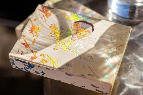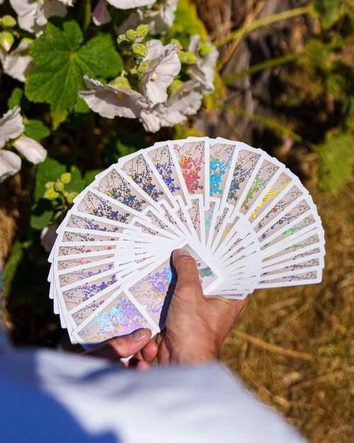 For the first time in the Sepal series, the full bouquet is brought to light and transformed by holographic foil. Designed with subdued contrast in mind, even the smallest movements unlock unique color gradients. Every reflection is a new interpretation of the design.