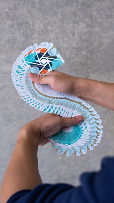 This deck is specially on special ocassion - Virtuoso team toured China and made a guest appearance in Simple Cardistry Convention in Nanjing, China. The design is inspired by the Yuhua Stone (雨花石), a natural gemstone unique to Nanjing, China, known for its distinctive patterns and vibrant colors that are often found along the Yangtze River. In addition, the deck's back design is added with gold cold foil and there are no indices on the faces. The deck is exclusive to the convention only, and will be very hard to be obtained later.
