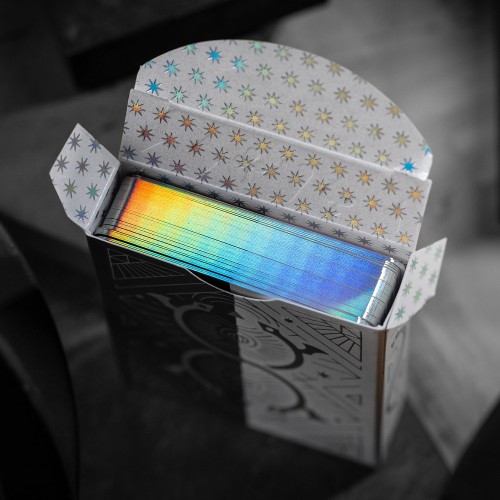 STYLE:Full-Bleed, Holographic Foil, Holographic Gilded, Split Color Background, Subtle One-Way Design