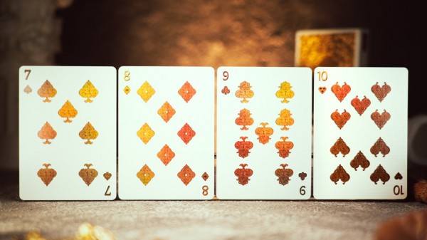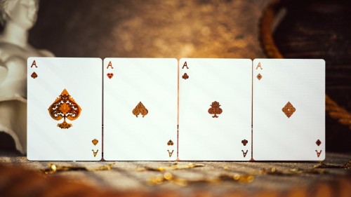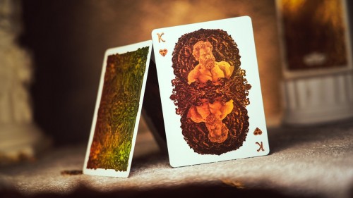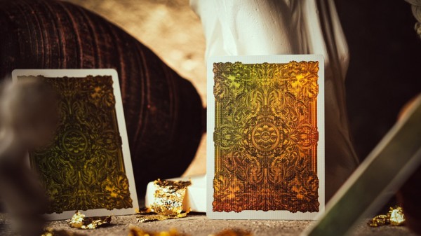 Both the faces and backs use dual-sided metallic foil, revealing an antique bronze sheen with an elevated tactile presence.