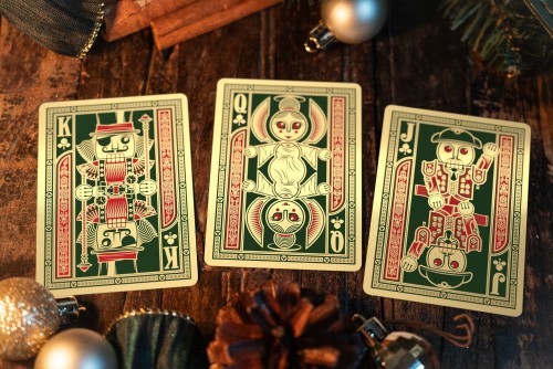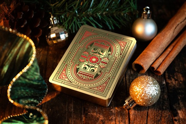 Step into a world of holiday magic with the Nutcracker Deck, a luxurious tribute to the timeless Christmas tale. Every detail has been carefully designed to capture the wonder of the season, from the fully custom court cards inspired by the characters of the Nutcracker story to the enchanting artwork that makes each hand feel like a scene from the ballet. The tuck box glistens with elegant gold foil, adding a festive shine that looks as beautiful on display as it does in hand. Perfect for collectors and players alike, this deck brings both artistry and functionality to the table. Whether you’re shuffling on Christmas Eve or gifting to a loved one, the Nutcracker Deck is the ultimate holiday keepsake—one that brings joy and tradition to every game.