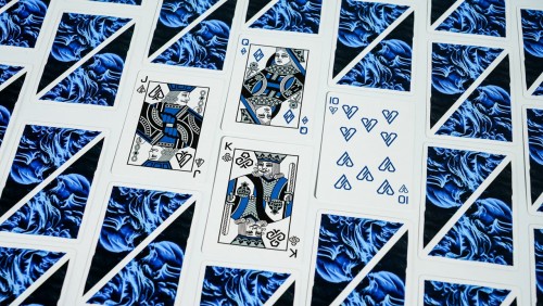 Feel the Universe presents a brand new Odyssey Playing Cards in collaboration with French "Futuristic Paintings" painter Nishe Anais Sardou. It is a fusion between Sergio Roca's iconic and signature design style of the Odyssey combined with Nishe's blue wave painting on the back design. The Courts feature the classic royals with semi-shiny metallic blue ink.