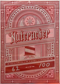 This is the remastered "Nutcracker" from KWP 2019 Subs. The deck's design is adjusted and the cards are printed in KWPCC - artworks adorned with metallic foil. The Sugar Plum Edition comes with a new color scheme that matches with the sweet vibe of the titular character of the Sugar Plum Fairy - the deck has the colors of red and pastel pink with metallic silver foil. The deck contains extras of two double backer cards. For this Gilded Variant, the cards are gilded with silver metallic foil, along with the tuck box matches with the color of the metallic foil.