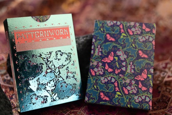Patternwork Playing Cards is an exploration of Japanese patterns fused with English style tapestry. The tuck box is composed of two parts: the fully foiled sleeve with extreme precision laser cut holes pattern and the fully covered patterned box. The cards are gilded with metallic foil with the back design of full-bleed borderless pattern. Most of the artworks on the deck appears as outlines, with patterns are the main focus of the deck.