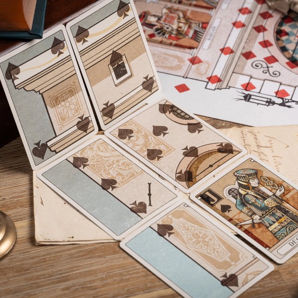 Designed for both play and divination, the deck unfolds a silent story of deception, desire, ambition, and judgment—enhanced by four special Jokers representing the forces of fate: Madness, Fortune, Misfortune, and Disguise.