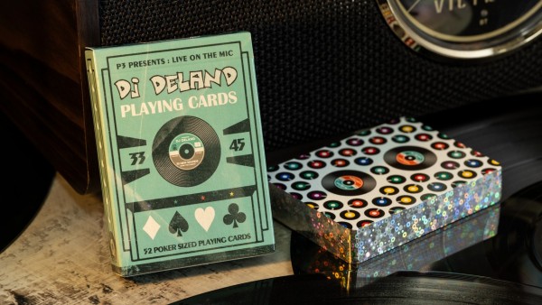 This is an ultra-limited Gilded edition of the DJ DeLand Playing Cards, remixing classic card design with a bold vinyl-record aesthetic and ingenious hidden markings with gorgeous holographic foil edges.