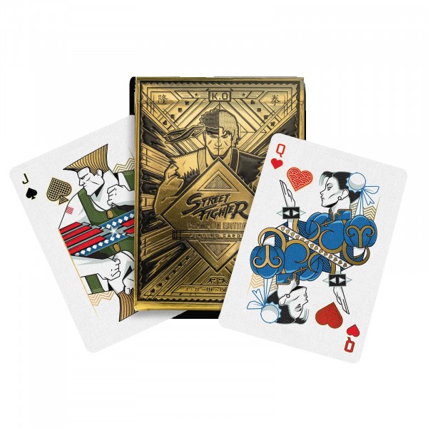 For the Street Fighter loyalists and franchise fanatics, we've created a special Edition of the deck - Street Fighter Champion Edition; only 1000 decks, etched in gold. Encased in our most luxurious box yet, each face card has a bespoke character illustration finished with shimmering gold details. Deep black line works pops against a golden film - In its reflection, you'll find a true champion, worthy of the prize.