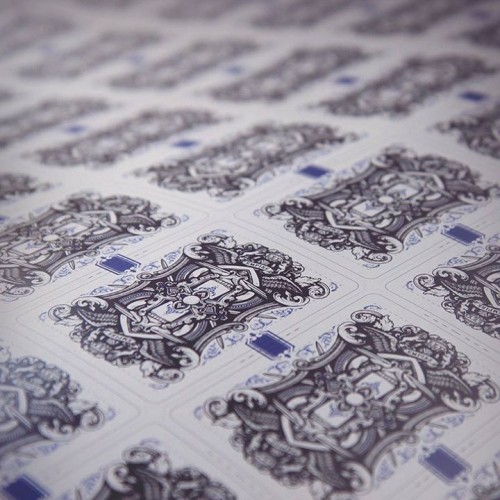 A Kickstarter project from Kings & Crooks and designed by Lee McKenzie.  The base cards and uncuts were printed by USPCC, but the Limited Edition was printed by Legends Playing Card Company (LPPC) on their Classic Card stock and Diamond finish.
