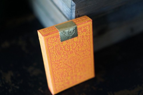 Featuring a bright orange tuck case with gold foil, and all neon inks — the brightest, and flashiest deck ever produced by Theory11